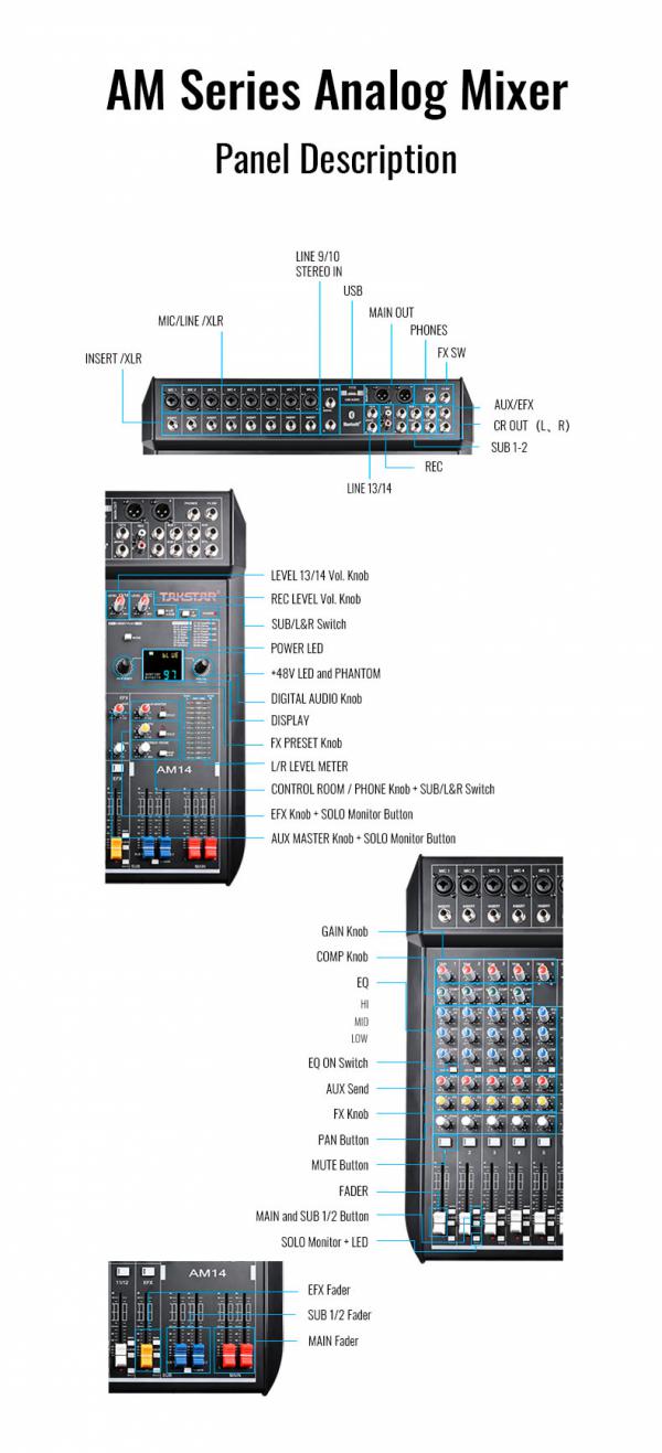 - CH MIC Gain: 10~60 dB