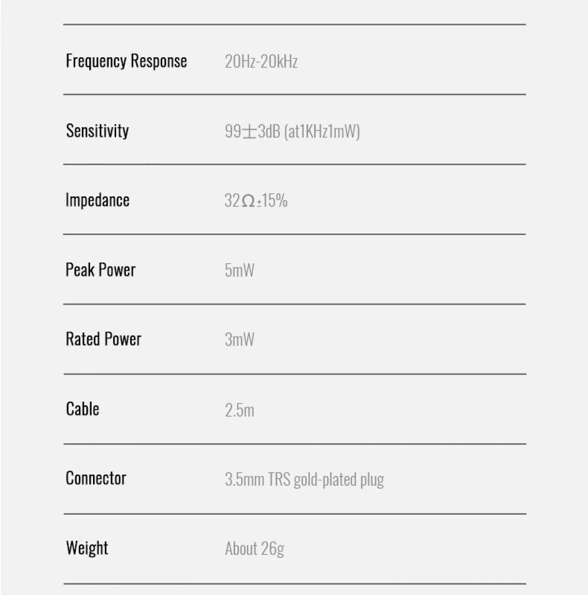 - Frequency Response: 20Hz~20KHz